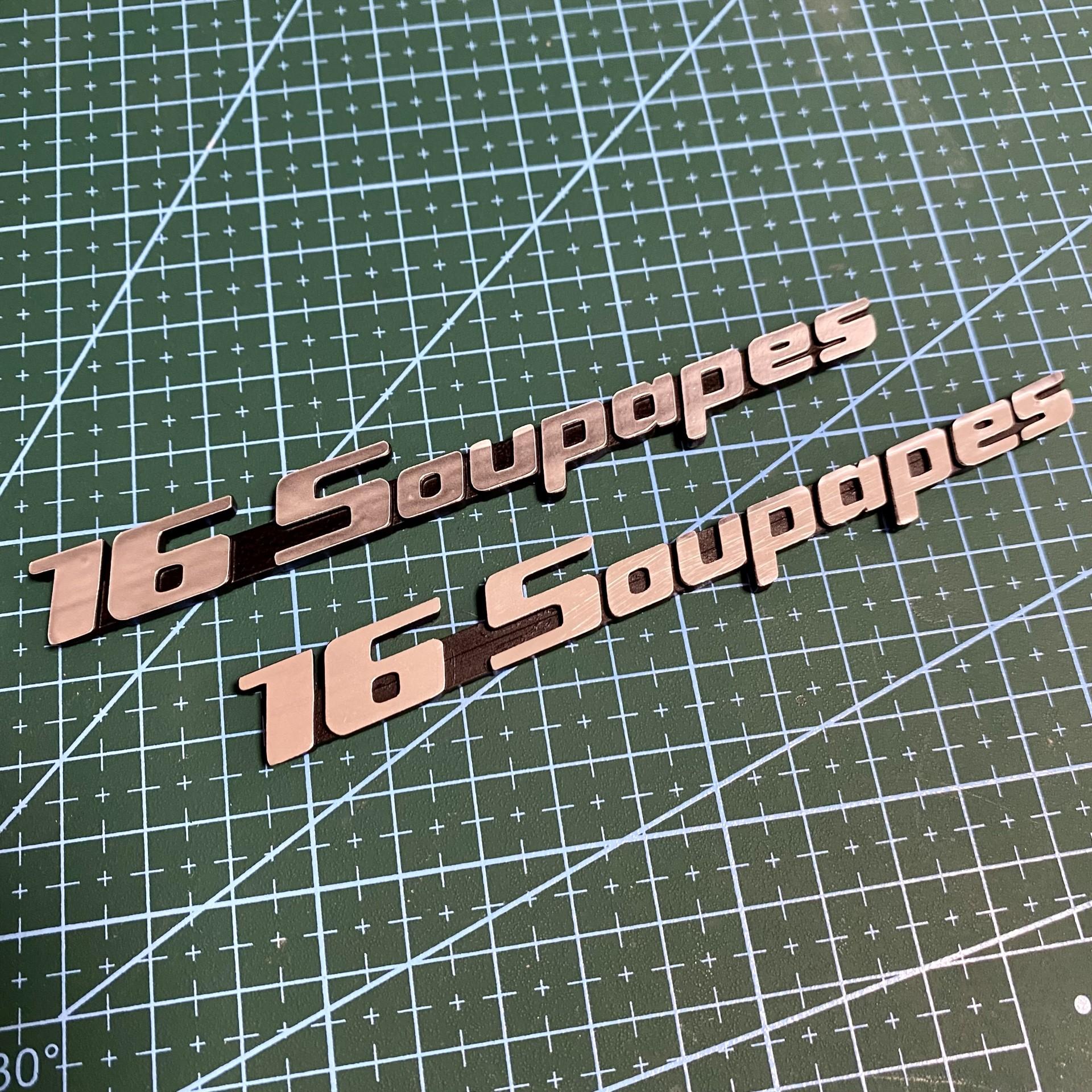 Lot de 2 monogrammes latéraux se fixant sur les custodes arrières des Citroën BX 16 Soupapes.